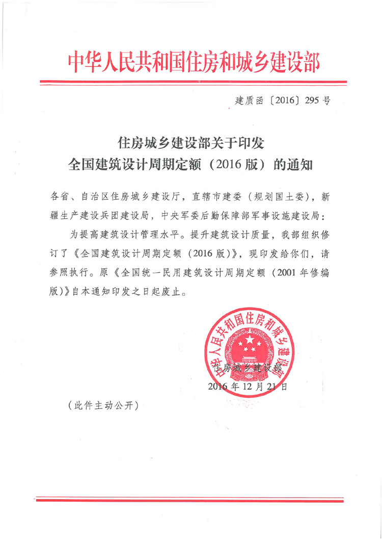 住房城鄉建設部關于印發全國建筑設計周期定額(2016版)的通知
