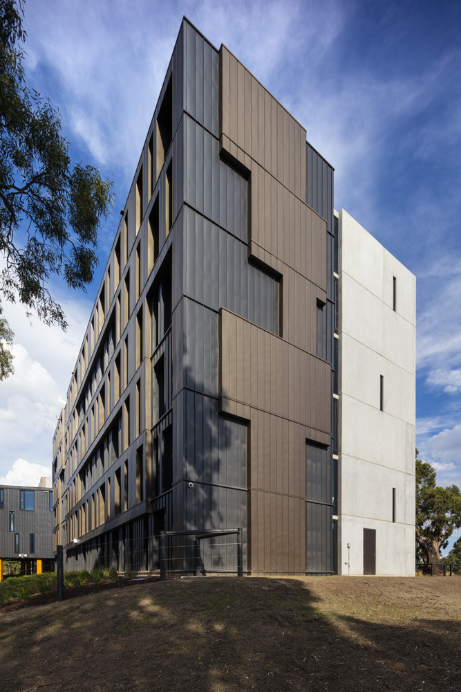項目坐落于墨爾本本多拉地區(qū),是RMIT大學的學生公寓。RMA事務所受RMIT所托設計學生公寓,其設計將為在校生提供最好的居住環(huán)境。RMA事務所與RMIT以及公寓的經(jīng)營者Unilodge緊密合作,保證居住在公寓里的人可以享受到公共空間帶來的各種便利,并在核心區(qū)設計充足的學生活動功能。該建筑的設計是簡單的偏斜十字架,被澳大利亞古老的植物環(huán)繞。這些樹木包括以Wurundjeri氏族祖先命名的Keelbundoora Scarred Trees。